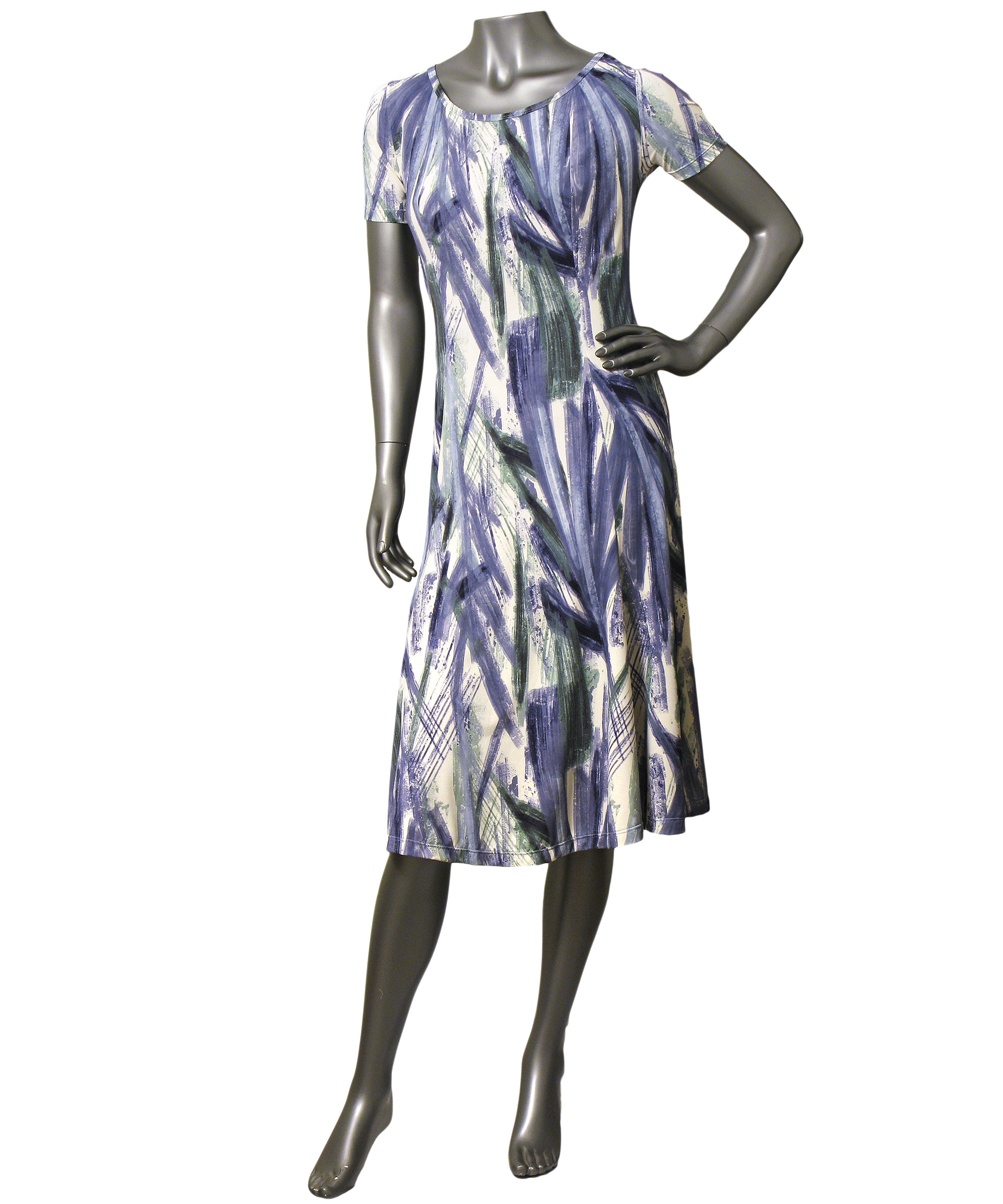 Vestido com modelagem clássica, levemente evasê e ajustado no corpo. O decote redondo e as mangas curtas equilibram simplicidade e sofisticação, tornando-o uma opção versátil para diversas ocasiões. A estampa artística em azul e verde adiciona personalidade e modernidade, enquanto o tecido fluity confere caimento impecável, toque macio e movimento natural. Um modelo prático, feminino e atemporal — perfeito para quem busca elegância descomplicada no dia a dia.